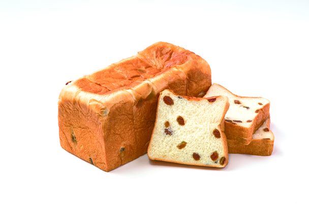 瑞々しく透明に輝くサンマスカットレーズンを、ミルキーでリッチな生地に余すことなく練りこみました。 そのまま食べても、こんがり焼いてバターを乗せてもレーズンのフルーティーな酸味を楽しめるデザート食パンです。